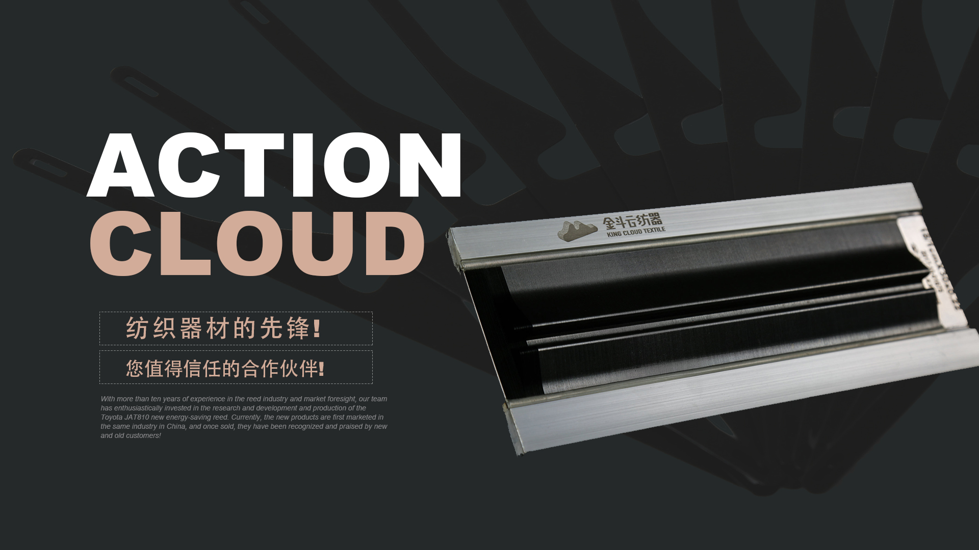 憑借十多年鋼筘行業(yè)經驗及對市場的前瞻性,我們團隊滿懷熱情的投入到豐田JAT810新型節(jié)能鋼筘的研發(fā)和生產當中,目前新產品在國內同行業(yè)中先行上市銷售,一經銷售就得到了新老客戶的認可和好評!